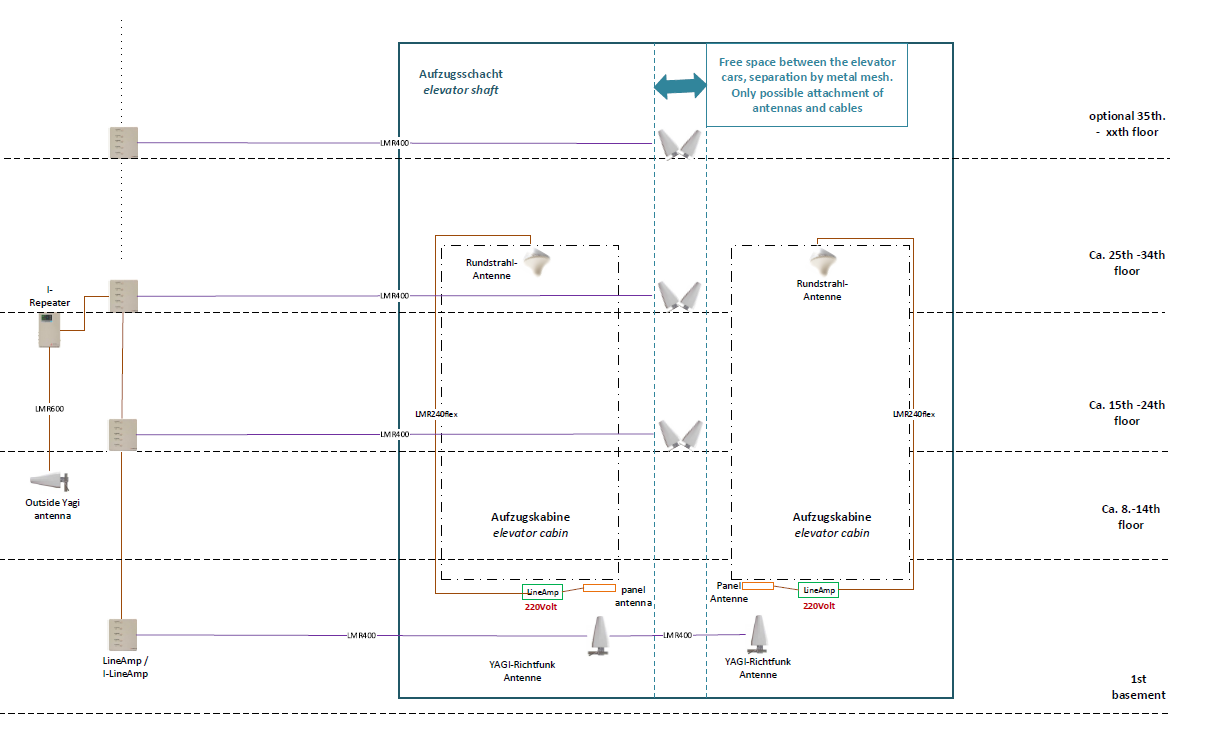Mobilfunk Empfang in Personen-Aufzüge mit jeweils 54 Etagen hergestellt!