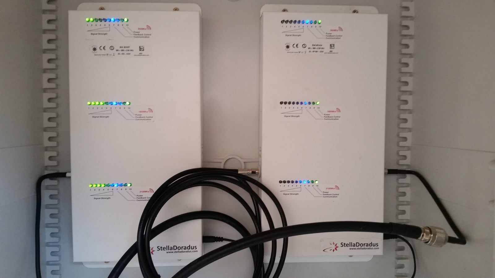 Auf einem 8 Meter hohen Mast wurde eine Richtantenne befestigt, die das gering vorhandene GSM Signal mittels eines Hochfrequenz-Kabels zum GSM Repeater leitet. Vom GSM Repeater wird dann das Signal über einen Big-Boost GSM Verstärker den gesetzlichen Normen entsprechend aufbereitet, und an die zwei sich auf einen 5 Meter hohen Masten montierten Sendeantennen mit Kabel übertragen.