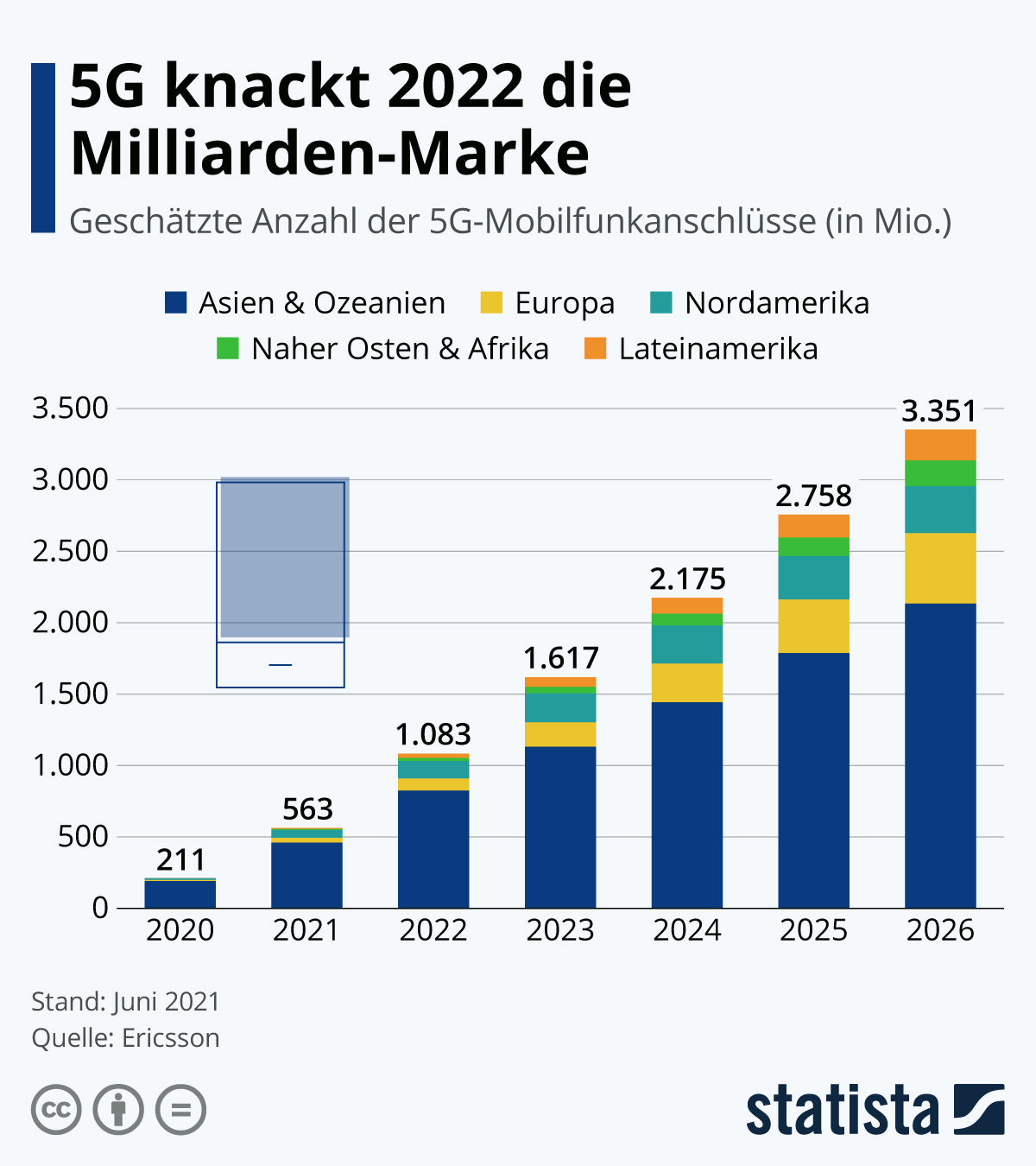 Quelle: https://de.statista.com/infografik/13074/geschaetzte-anzahl-der-5g-mobilfunkanschluesse-weltweit/