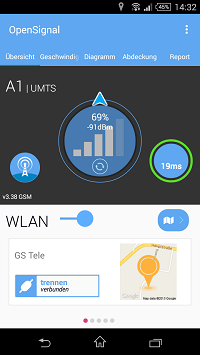 - Starten Sie die App „OpenSignal“ und wechseln zur erweiterten Ansicht.